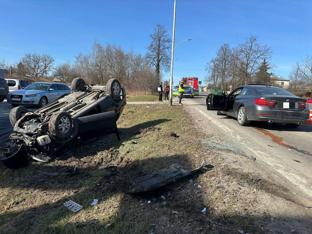 Policjanci pracowali na miejscu zdarzenia drogowego, do którego doszło w Przeworsku na ul. Łańcuckiej. Ze wstępnych ustaleń wynika, że kierujący pojazdem marki BMW stracił panowanie nad autem i zjechał na przeciwległy pas ruchu, doprowadzając do zderzenia z prawidłowo poruszającym się pojazdem marki Hyundai. W wyniku zdarzenia jeden z samochodów dachował.