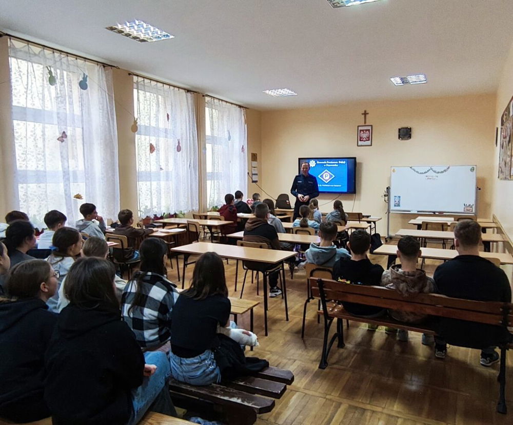 Od początku marca przeworscy policjanci prowadzą cykl zajęć dla uczniów szkół podstawowych i ponadpodstawowych w ramach działań „Bądź bezpieczny wiosną”. Celem spotkań jest uświadomienie młodzieży zagrożeń oraz konsekwencji zachowań niezgodnych z prawem i normami społecznymi.